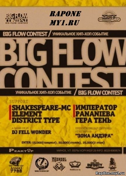 Хип-хоп фестиваль: "Street energy" ("Энергия улиц") 26 февраля 2011 Клуб: "Реактор" (Адрес: ул. Веры Хоружей, 29) Организатор: "Double M Production" СМОКИ МО - Новый альбом + все хиты KEEP IN MIND (МУЗА СКАТ & PROPHY PROFF) НЕСТАНДАРТНЫЙ ВАРИАНТ ИМПЕРАТОР BLAQ P. CONNECTED КРИМ SNIG MUFFAZA & DIAZ P А также: BREAK-DANCE- 4 команды (5x5) HIP-HOP - 4 команды (2x2) LOCKING - 8 участников (x1) KRUMP- 4 участников (x1) C-WALK FOOTBAL STREET STYLE BEATBOX GO-GO SHOW Цена билета (предварительно): 40 тыс. - танцпол 50 тыс. - танцпол 70 тыс. - V.I.P. БИЛЕТЫ МОЖНО ПРИОБРЕСТИ: в переходе ст. метро: "Купаловская", "Пушкинская". в переходе около "Гума" в кассе около кинотеатра "Центральный" в переходе ст. метро "Якуба Коласа" (вд
